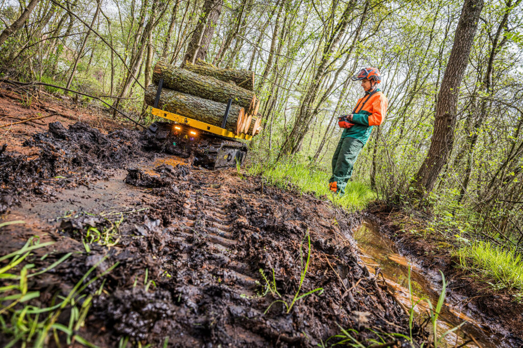 Developed by Dutch manufacturer VTS Track Solutions, the Fero ETP-10 and ETP-20 are remote-controlled, battery-electric carriers designed to handle heavy loads such as bricks, sandbags, fencing materials or glazing panels across construction, forestry and landscaping environments. Traditionally, these materials were moved manually or using machinery not optimised for confined or variable terrain, often at the expense of safety, ergonomics or productivity.