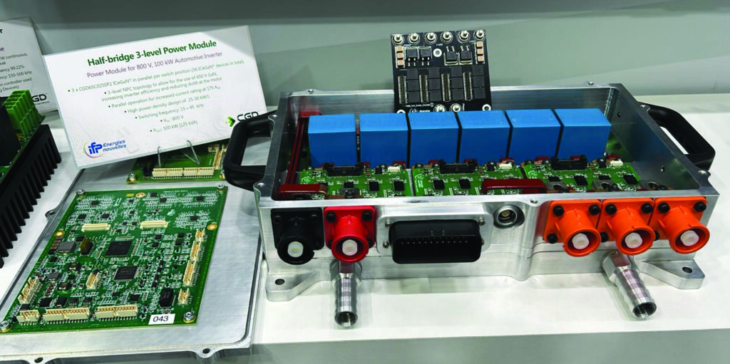 A new generation of d-mode GaN devices is being developed with a breakdown voltage of 1350 V to address 800 and 1000 V powertrains directly rather than having to use a multilevel architecture with 650 or 750 V devices.
