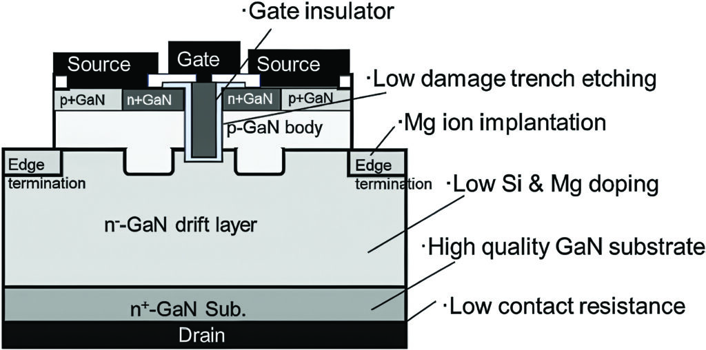 Even today, one of the major obstacles preventing practical application of vertical GaN structures is the immaturity of key manufacturing processes. For vertical GaN devices, reliable and reproducible process technologies, such as low-damage dry etching, selective doping, high-quality gate dielectric formation and stable ohmic contact formation are essential for achieving both high performance and manufacturability. This is enabling MOSFET structures rather than the current planar HEMT structures.